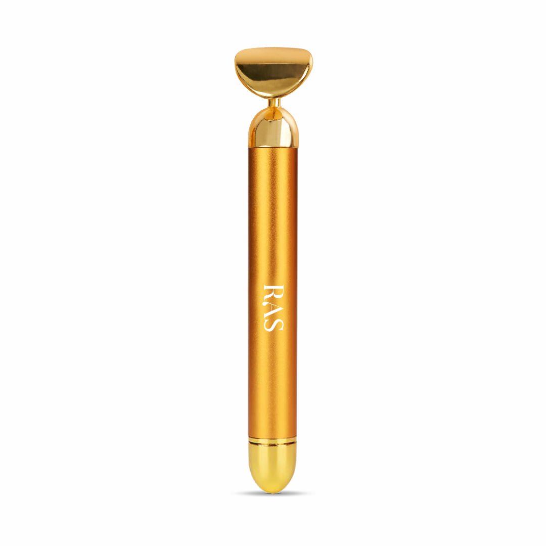 The 24K GOLD PETAL SHAPE ELECTRIC FACE MASSAGER instantly sculpts, contours, and firms the skin, reducing puffiness and improving elasticity. Its stimulating action promotes blood circulation, relieves muscle tension, and stimulates cell renewal, resulting in a more youthful appearance with reduced wrinkles and dark circles.