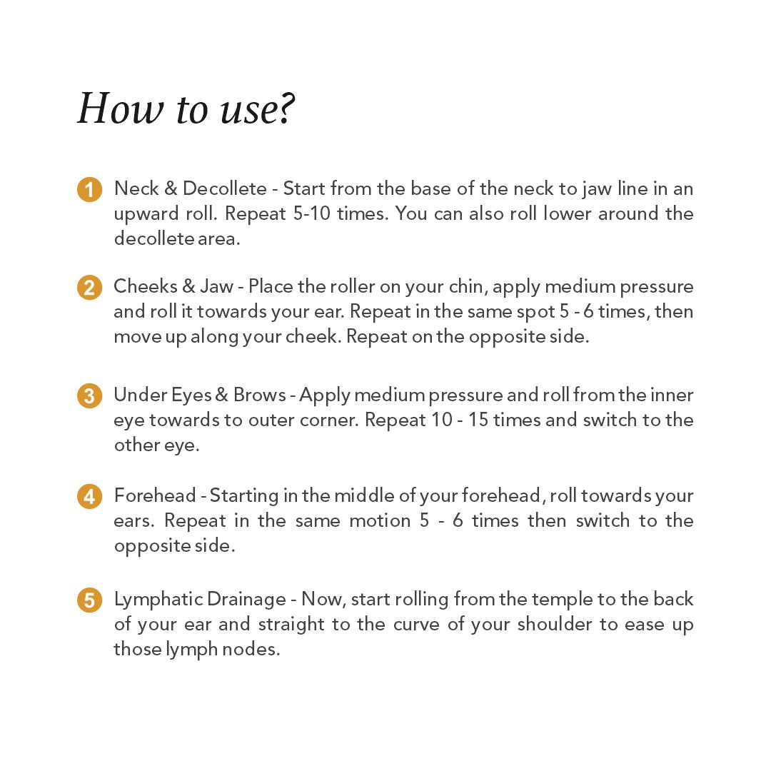 Usage: After cleansing your face apply the RAS™ Rose Nectar Face Spritz & use 2-3 drops of RAS™ Face Elixir. This will enhance product penetration and will allow better movement of the tool. Use the tool to gently massage your face as per directions given inside the box.