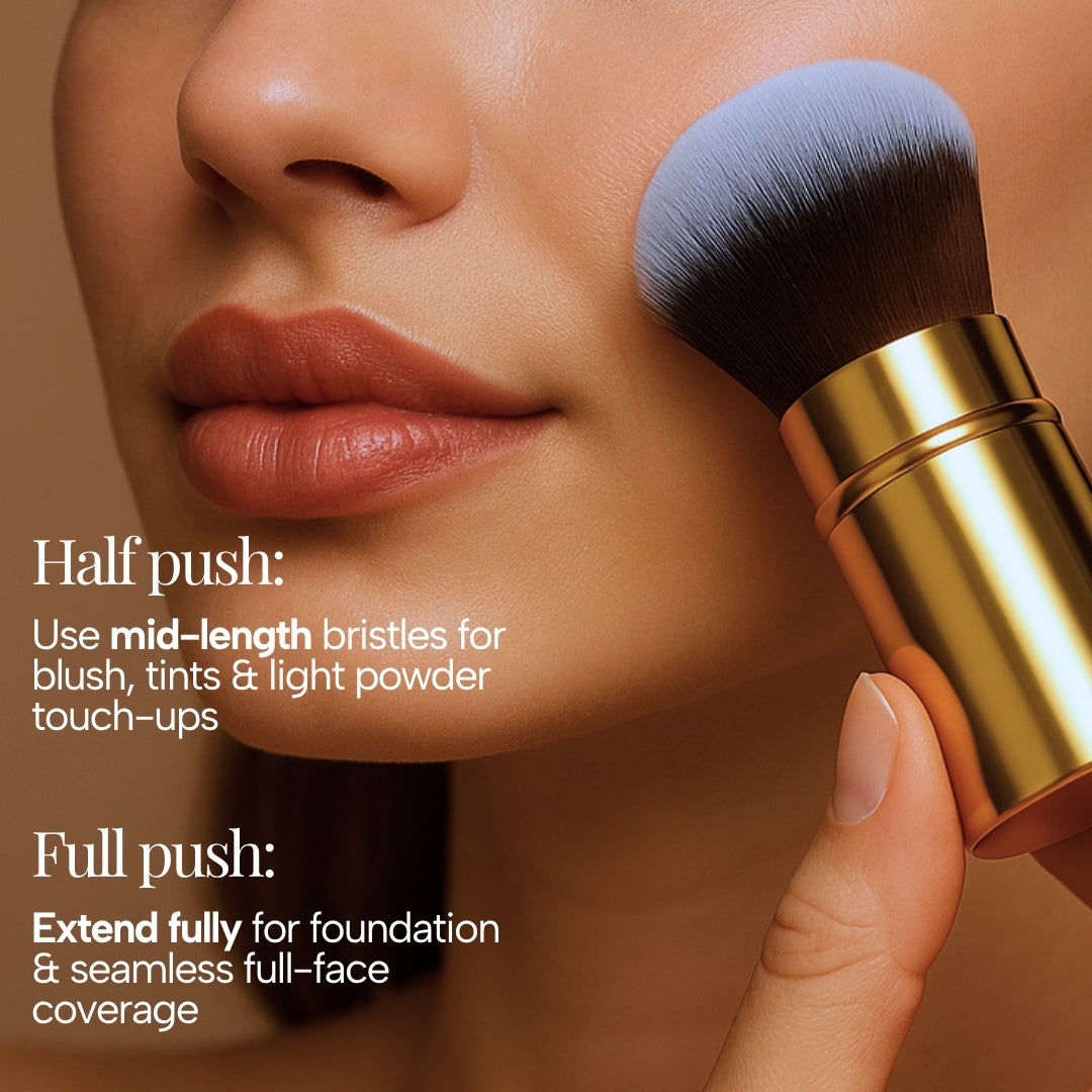 The GlowBase™ Foundation Brush works beautifully with liquid, cream, serum-based, and powder formulas—including foundation, blush, bronzer, and setting powder.