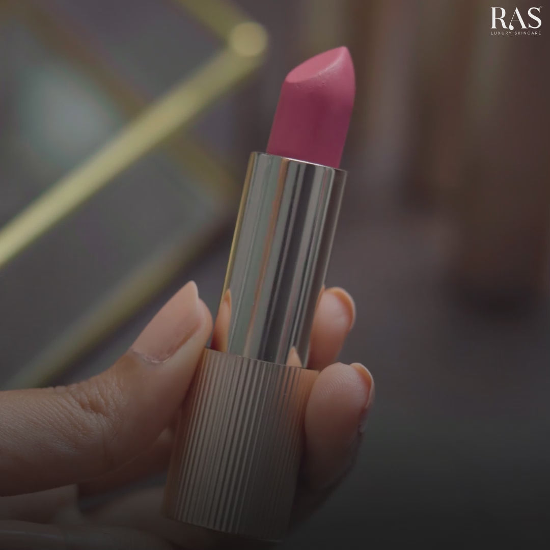 Discover the magic of RAS Lumière Satin Matte Lipstick a harmonious blend of matte richnes s and botanical hydration. Tailored for every skin tone and age, it offers a non-transferable, creamy texture which is oh-so-light for a fresh, radiant, and perfect pout all day.
