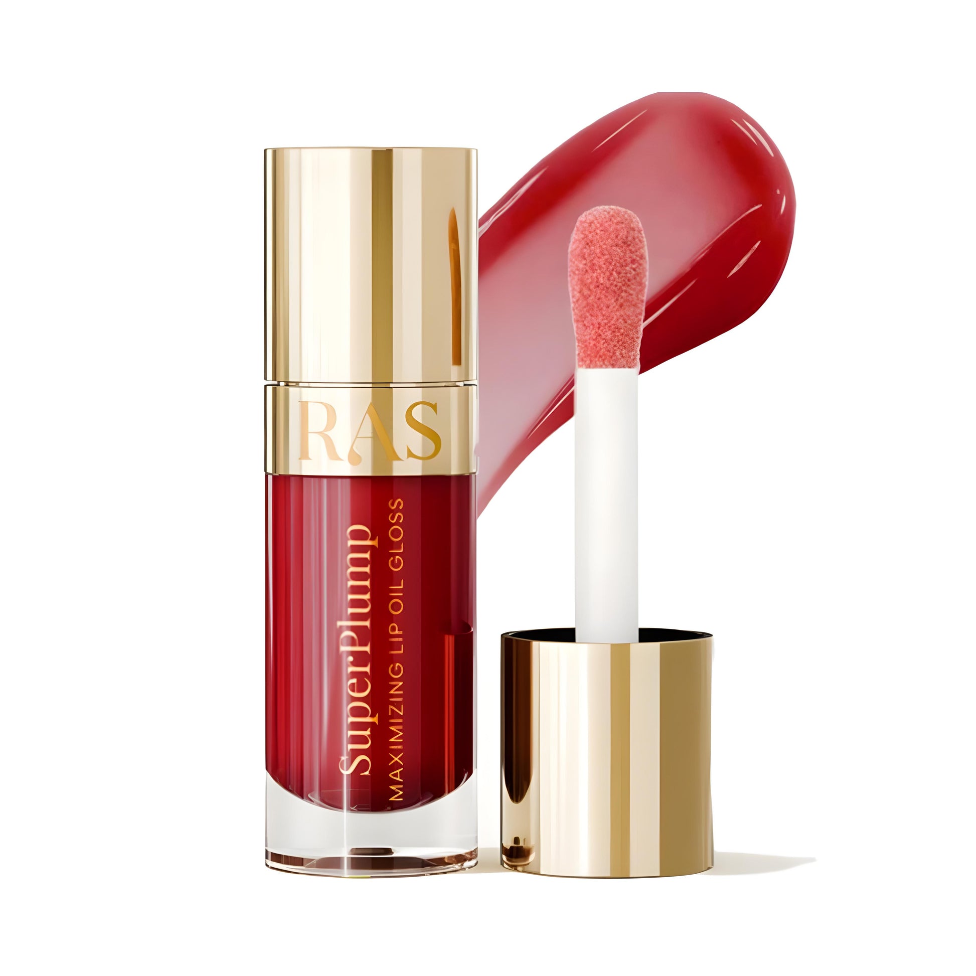 Discover the range of RAS Super Plump Maximizing Lip Oil Gloss available in 10 shades. Made with the luxurious blend of 96% natural ingredeints & SPF 20, this next gen lip oil will give you naturally fuller, plumper lips in one swipe.