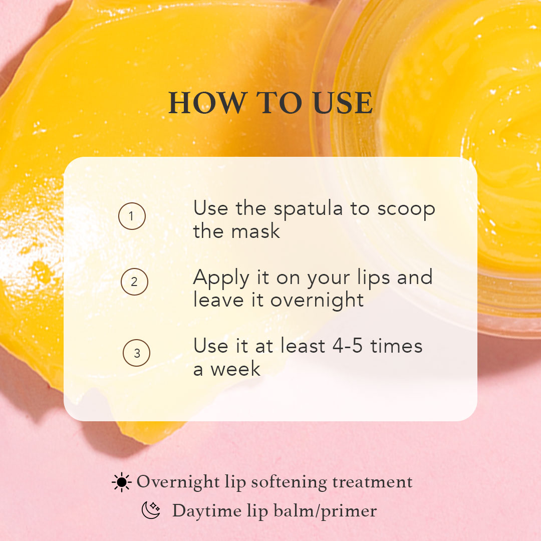 Use the spatula to scoop the mask, warm it up between your fingers and apply it before you go to bed for intense hydration. Recommended use 4-5 times a week.