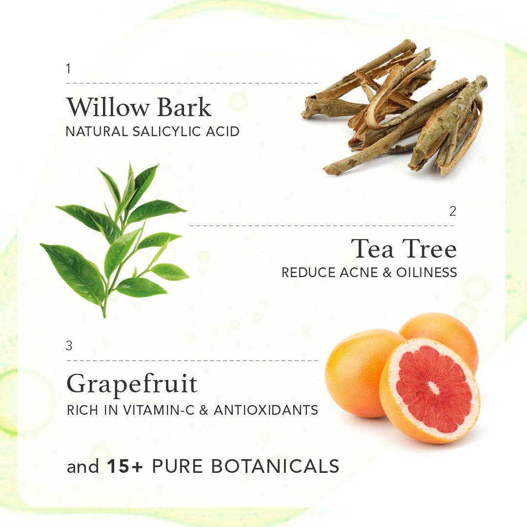 • Willow Bark Extract reduces acne and prevents future breakouts.