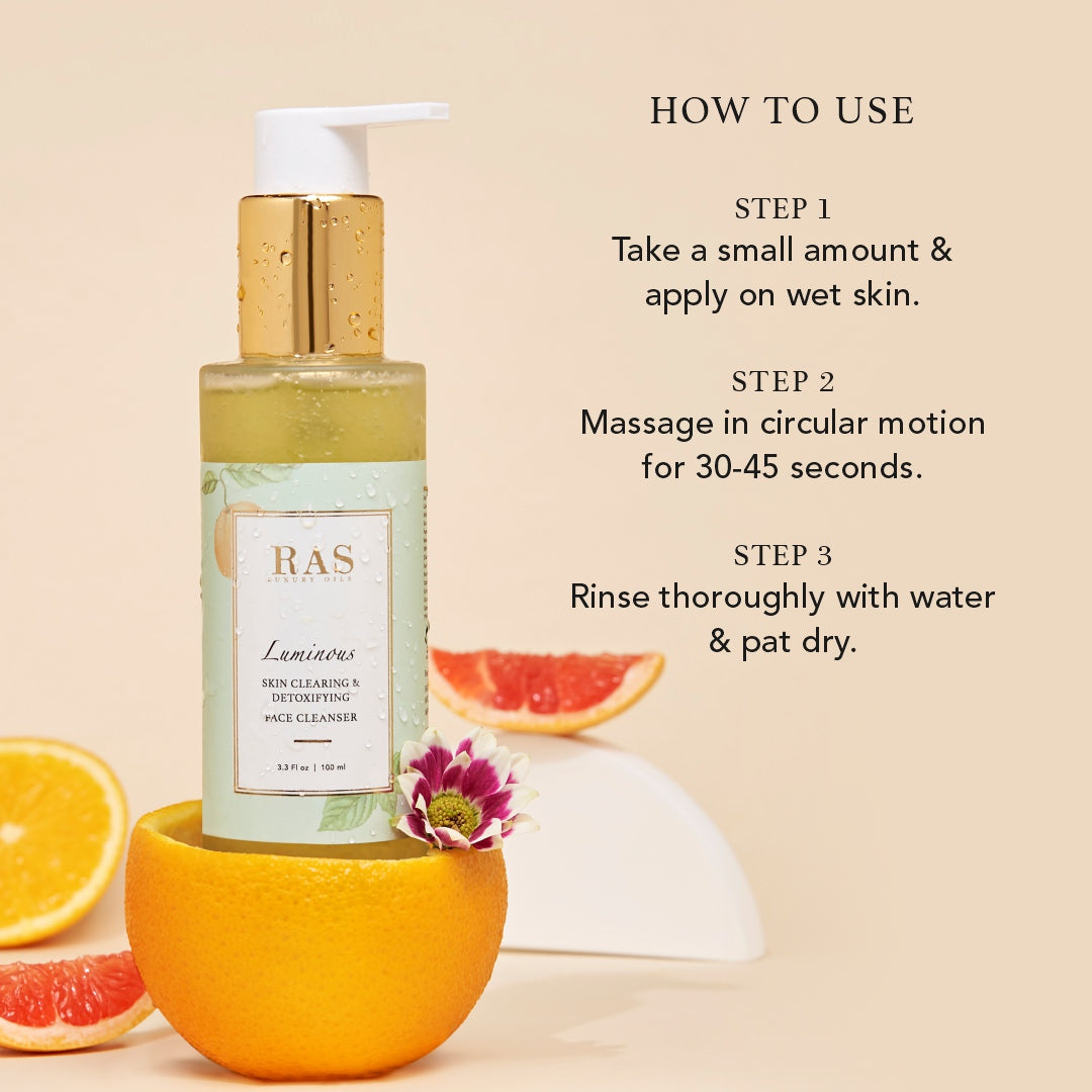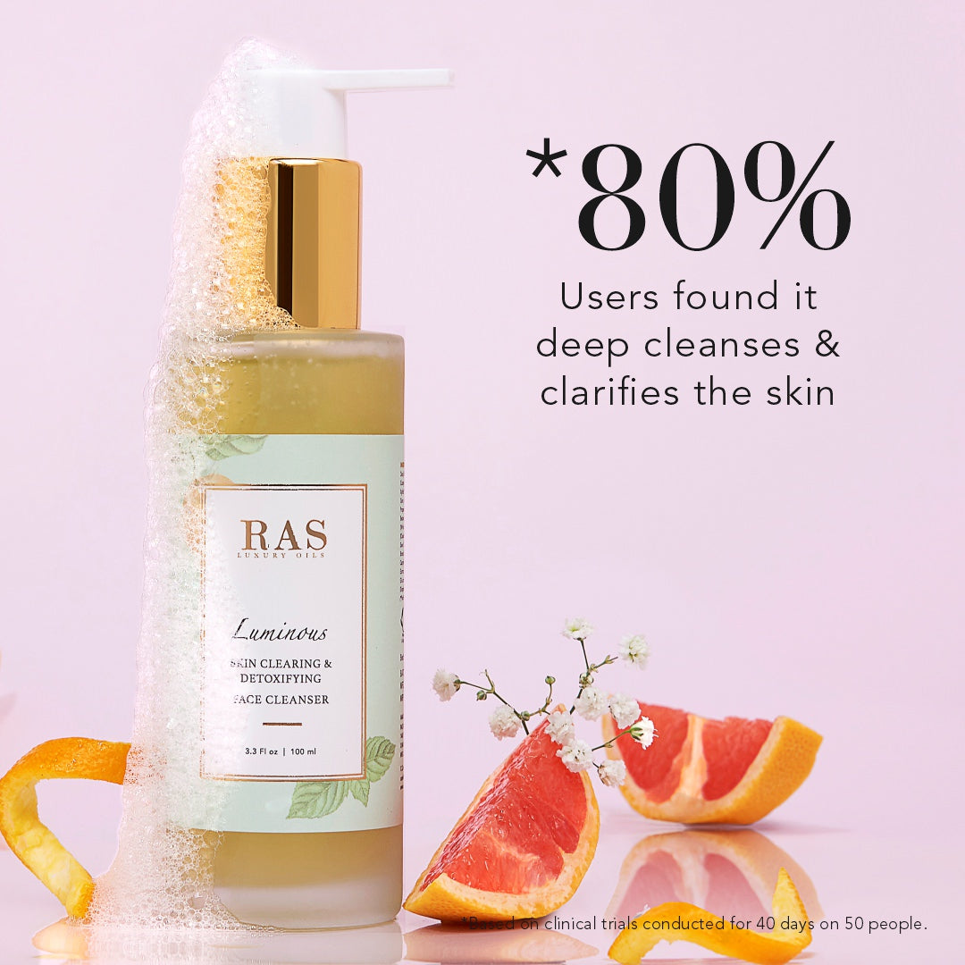 Our Luminous Skin Clearing Face Cleanser is suitable for oily skin types.