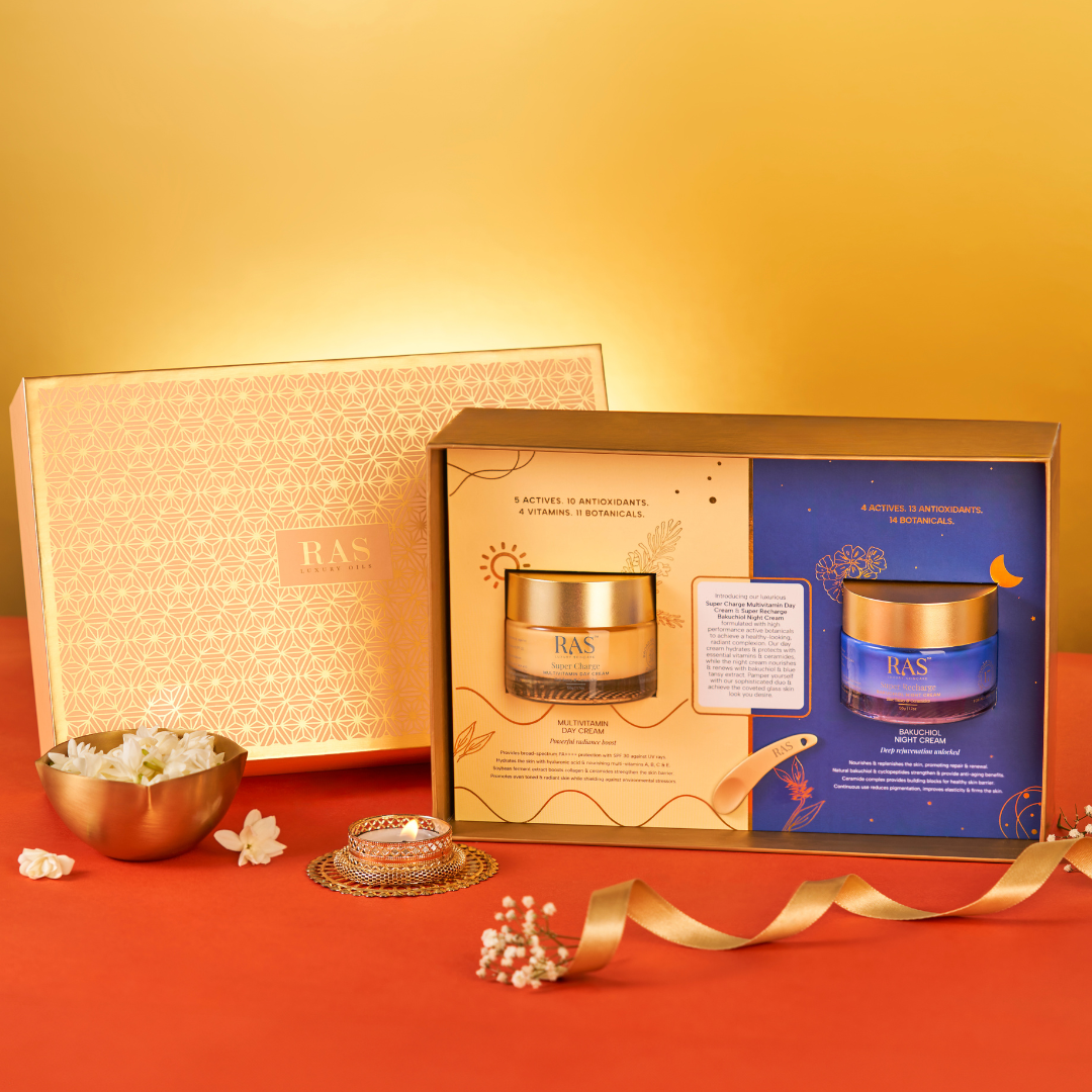 Indulge in a daily ritual of self-care with the Ras AM & PM DUO gift set. This set is carefully crafted to brighten your skin by day and provide intense hydration by night, ensuring your skin stays supple and youthful.