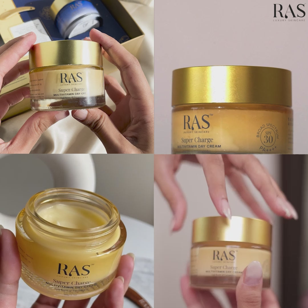 After cleansing your face, treat your skin to our all-in-one Super Charge Day Cream, which not only brightens your complexion but also eliminates the need for extra serum or sunscreen and in the evening, nourish your skin gently with our Super Recharge Night Cream for overnight moisture and hydration.