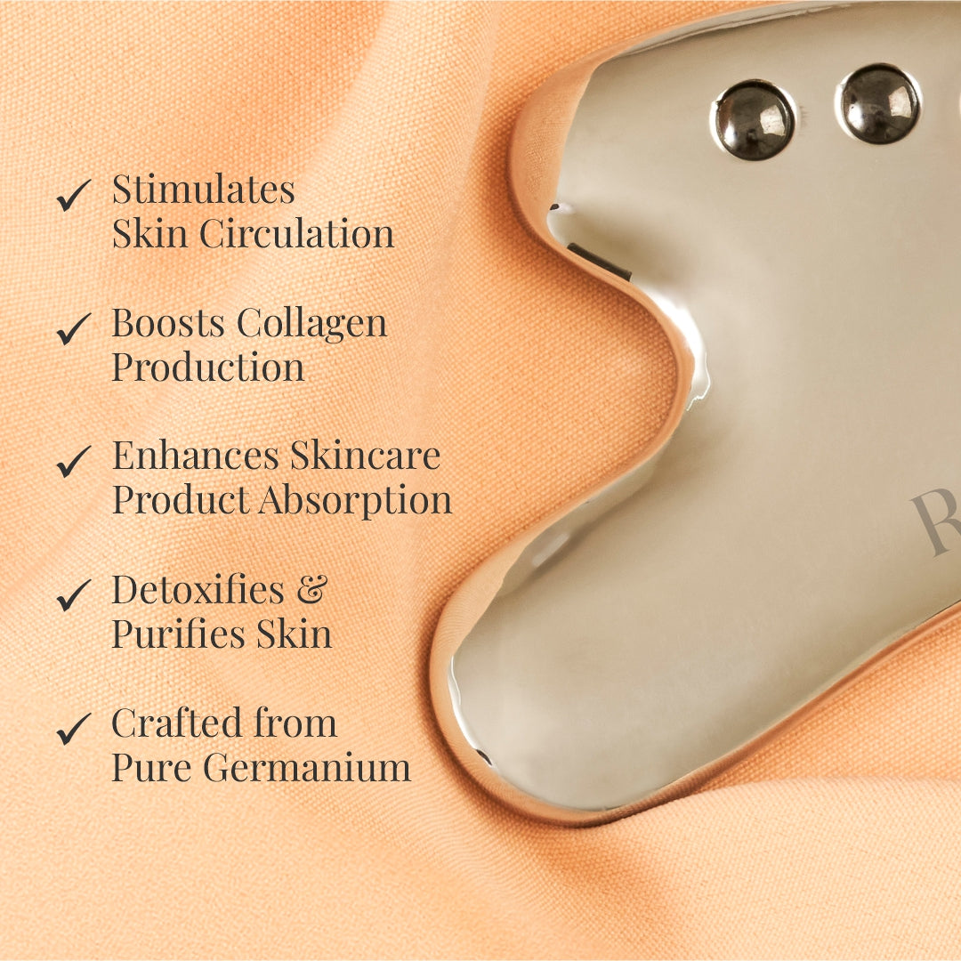 Elevate your skincare with the Germanium Gua Sha, designed to enhance circulation, reduce puffiness, and sculpt your face. It helps flush out toxins, smooths fine lines, and restores a radiant, youthful glow.