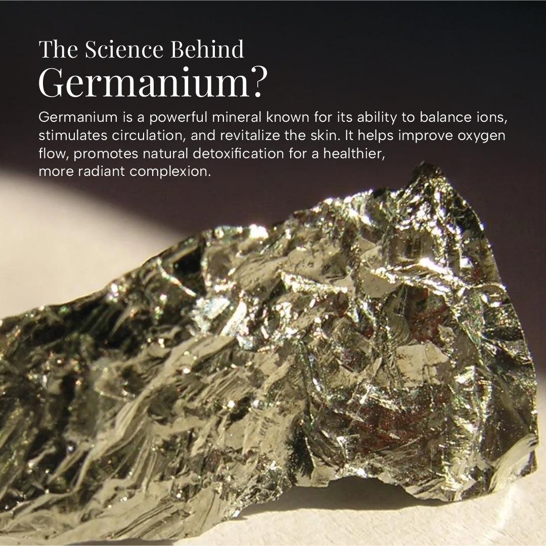 Germanium: Made with 100% pure natural Germanium Granules, free from artificial chemicals or synthetic treatments. Germanium is known for its revitalizing properties, helping to balance ions, boost circulation, and promote overall skin wellness.