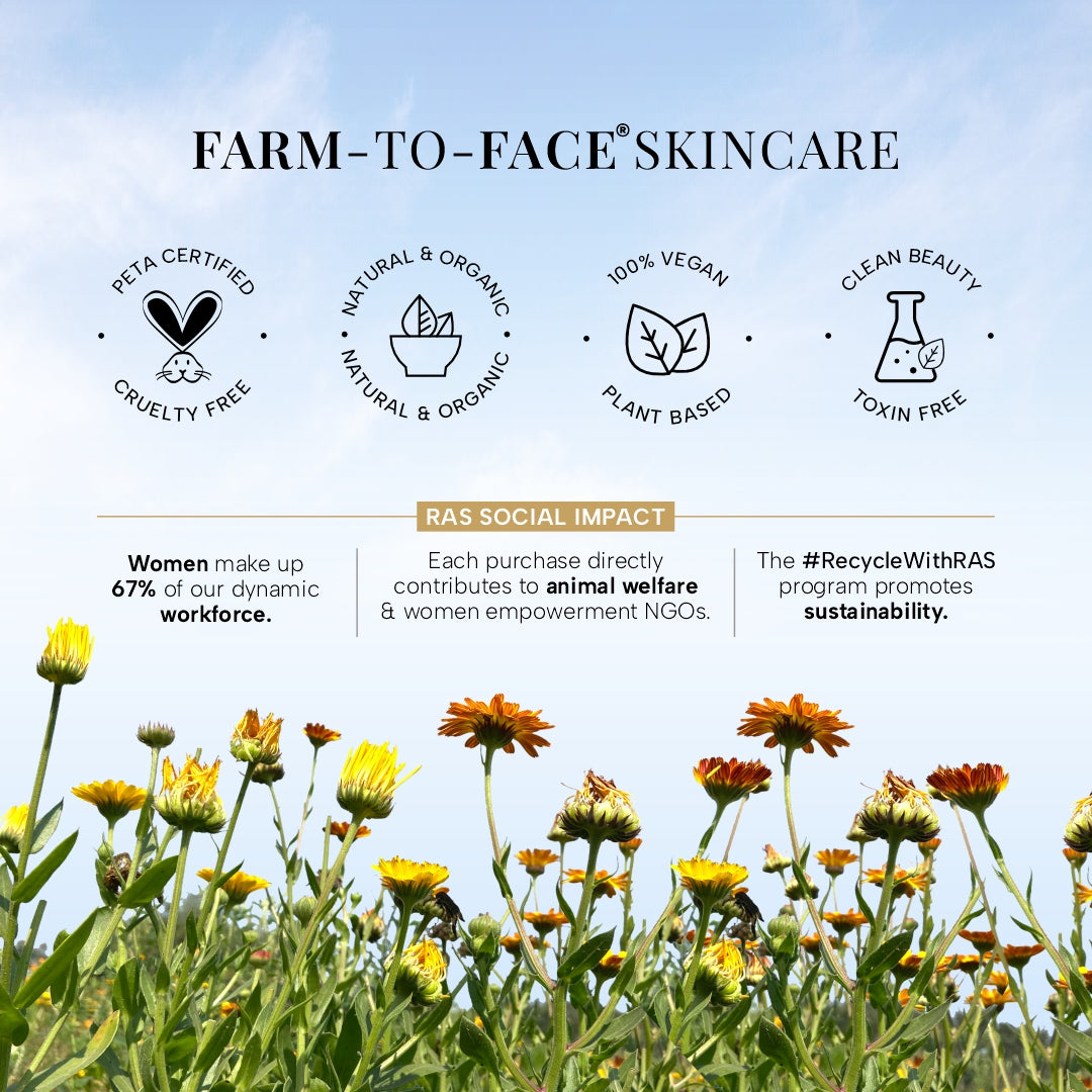 Our Philosophy stems from the desire to enchant our patrons with products containing only the ‘RAS™’ of nature and nothing else. Being the first ‘Farm to Face®’ venture in India with our own farms and research lab, we make available the luxury of a beauty regime in the form of 100% pure, natural products! Read More