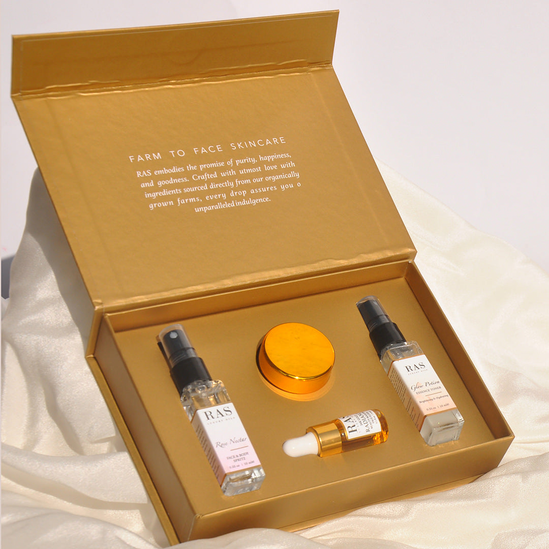 Get it in 5 mins on Glow-Boosting Beauties Gift Set (4 Piece) is a luxurious skincare set designed to nourish and revitalize your skin for a radiant glow. Featuring four essential products, including a cleanser, toner, serum, and moisturizer, this gift set provides a complete skincare routine to address various concerns and promote healthy-looking skin. Formulated with premium ingredients and botanical extracts, these products deliver intensive hydration, brightening, and anti-aging benefits. Treat yourself or someone special to the gift of beautiful skin with Ras Luxury Skincare Glow-Boosting Beauties Gift Set.