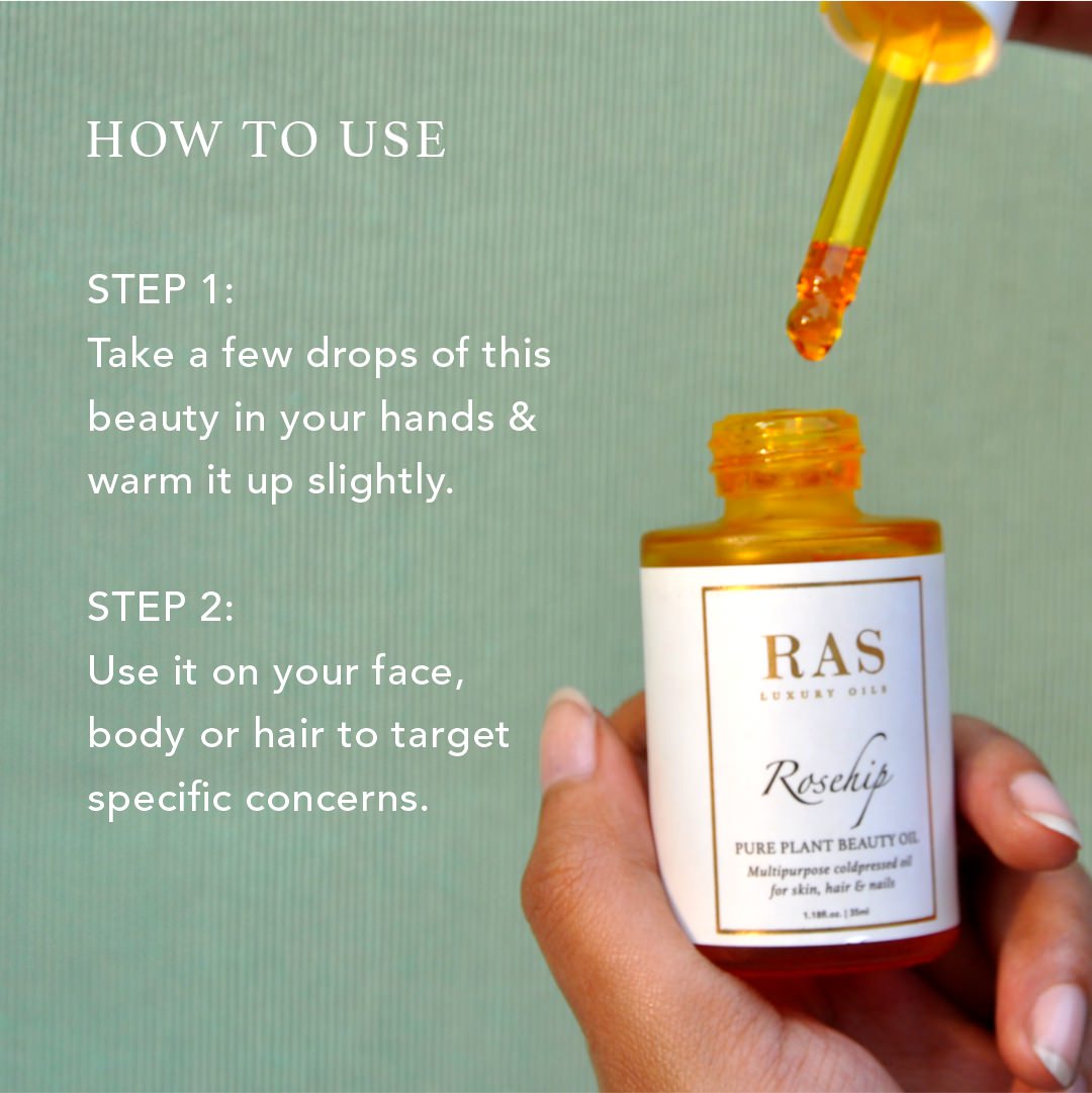 This oil can be used in multiple ways depending on your need. As an after bath moisturization use it on cleansed wet skin to seal in moisture and add shine. As a massage oil, mix it with a few drops of your choice of essential oil and massage gently. Leave on for at least 30 minutes followed by a warm bath. For scalp, massage a few drops on the oil with your fingertips and leave on for 2 hours before a hair wash.
