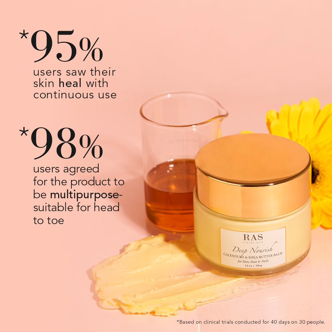Am a big RAS user. Trying this balm for the first time; to essentially nourish the under eye area and the knees ... Love the texture & feel and hope continued use will show a big difference.