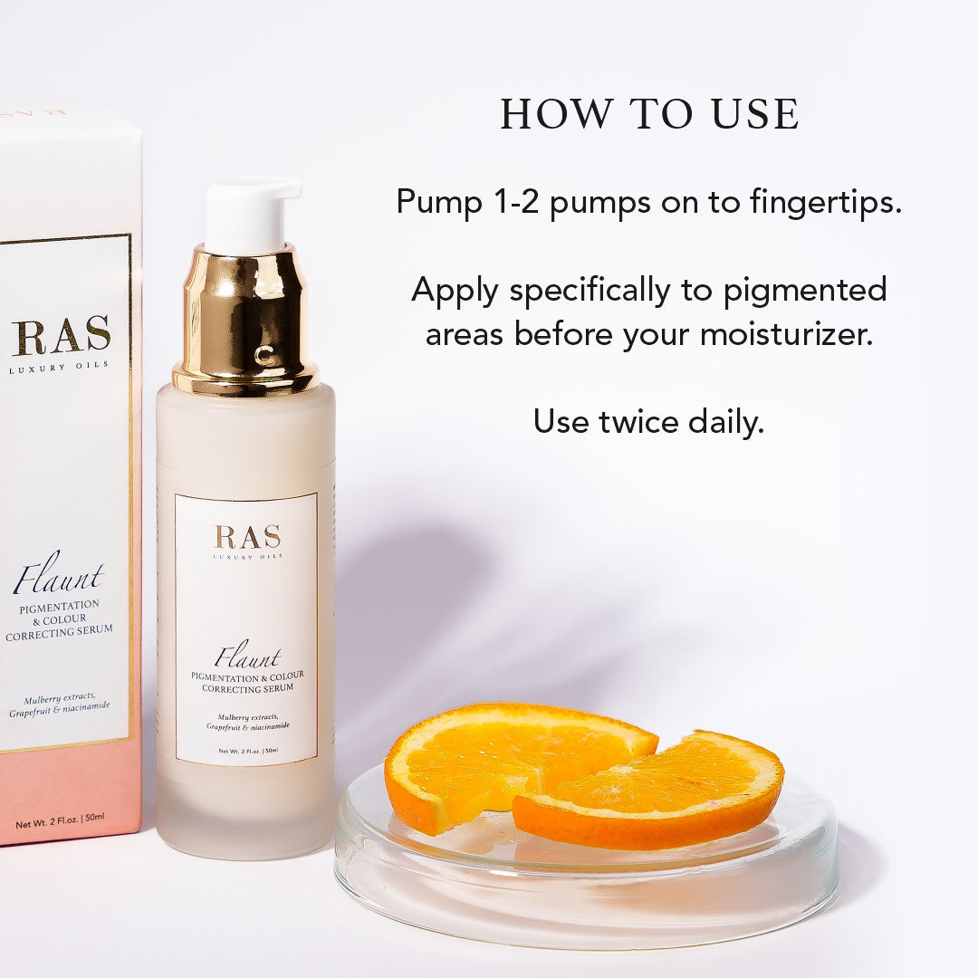Pack Contains: 24K Gold Elixir 3ML , Radiance Face Cleanser 10ML+ Anti-Pigmention Serum 3ML + Solaris-Mist 10ML + Hand Cream10ML + Flaunt Serum 10ML + Golden Pouch