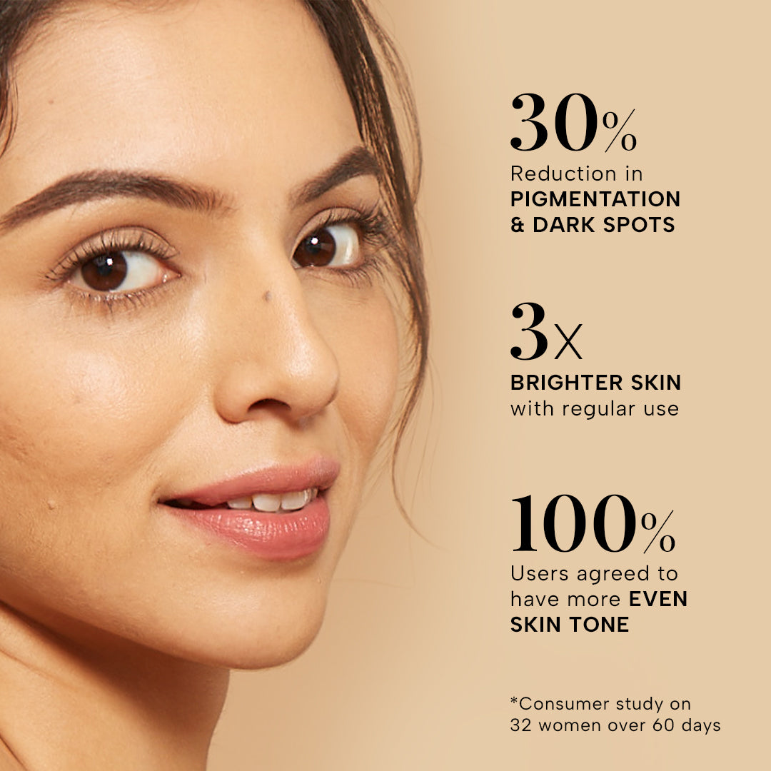 It reduces dark spots, evens skin tone, and enhances skin brightness.